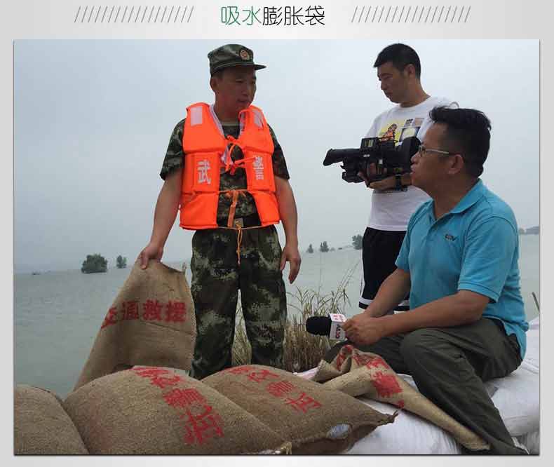 以水治水,快速膨脹,管涌以及快速構(gòu)筑擋水壩,封堵缺口,替代沙袋,替代沙袋和編織袋。操作簡單,攜帶運(yùn)輸方便,遇水膨脹速度快,浸入水中 3 分鐘即可迅速膨脹至 18 ~ 20 千克,吸水膨脹袋 經(jīng)現(xiàn)場測試比沙土包堵截速度快9倍,使用時(shí)只需一人就可以完成,勞動強(qiáng)度大為減輕,無毒,無害,無味,無污染,可自然降解