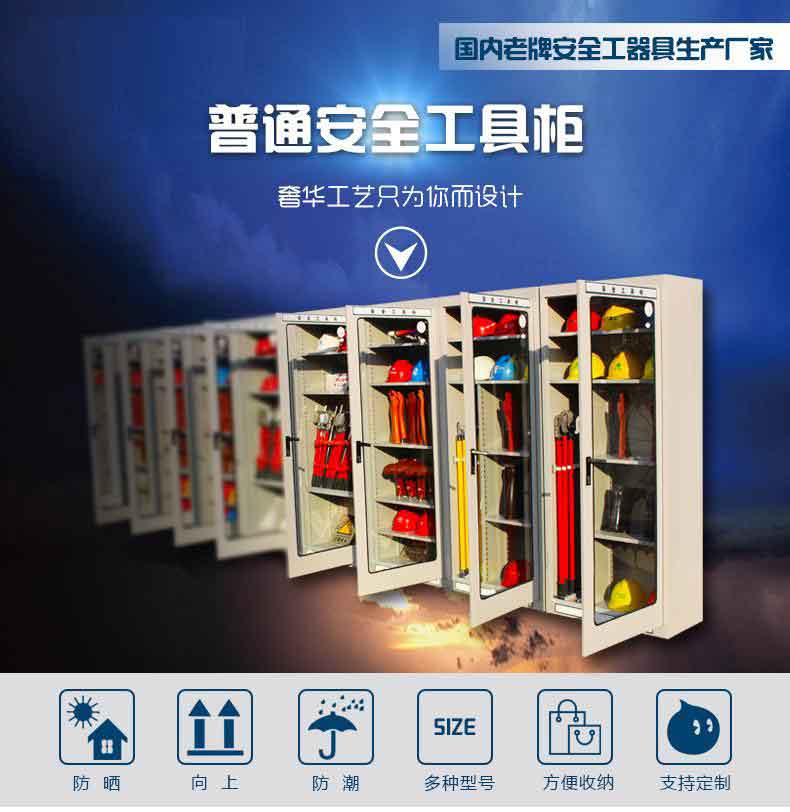 電力安全工具柜又稱安全工器具柜,按功能可以分為普通排風(fēng)除濕柜,智能烘干除濕柜,智能抽濕除濕柜等 外殼選用1.2優(yōu)質(zhì)冷板,采用磷化鋅系、藝術(shù)型靜電噴涂,高強(qiáng)度鋼化透明玻璃(外觀色為微機(jī)灰)。接地線均配有接地線繞線架及帶夾反光編號(hào)牌,使接地線纏繞規(guī)范不易損壞,擺放整齊使用方便;絕緣手套配有防粘連撐板,絕緣擋板、絕緣棒、驗(yàn)電筆、操作桿均設(shè)有橡膠墊定位卡,安全帶、腳扣、鑰匙設(shè)有專用掛鉤,標(biāo)示牌按種類分格放置,圍網(wǎng)配有專用包,網(wǎng)桿配有專用筒,網(wǎng)桿座分格放置,防毒面具配有專用箱,呼吸器設(shè)有專用滑板。廣泛應(yīng)用于各種電壓等級(jí)的變電站、集控站、線路工區(qū)以及電力公司客服中心等單位和部門,并適應(yīng)不同溫濕度地區(qū)的使用。