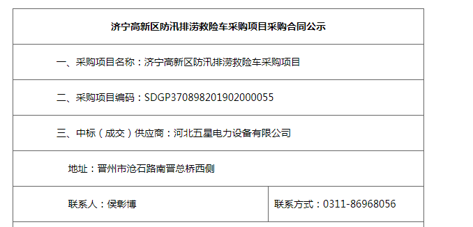 熱烈祝賀河北五星濟(jì)寧高新區(qū)防汛排澇救險(xiǎn)車采購項(xiàng)目一舉中標(biāo)!