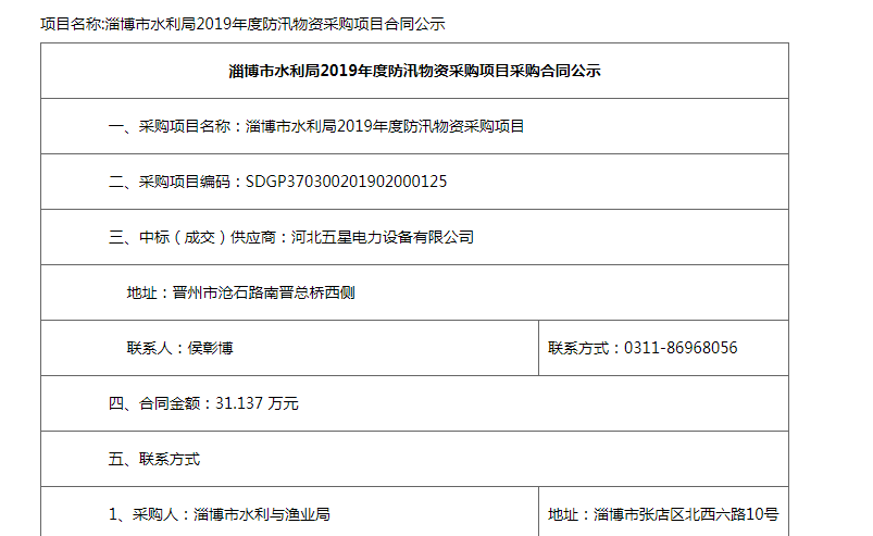 熱烈祝賀河北五星淄博市水利局2019年度防汛物資采購項(xiàng)目一舉中標(biāo)!